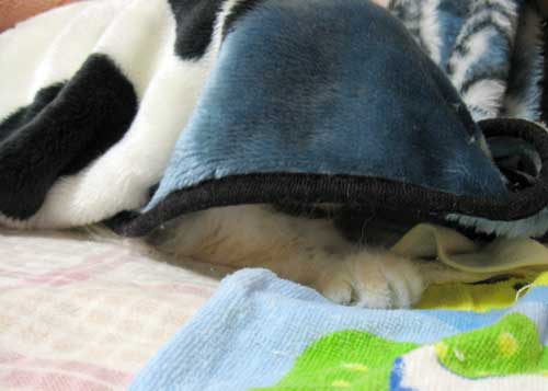 毛布に埋もれてたハリー。