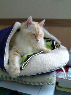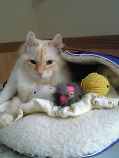 実はお昼頃まで一緒に寝てたんだけど、バーちゃん猫のちびたが寒かったらしく